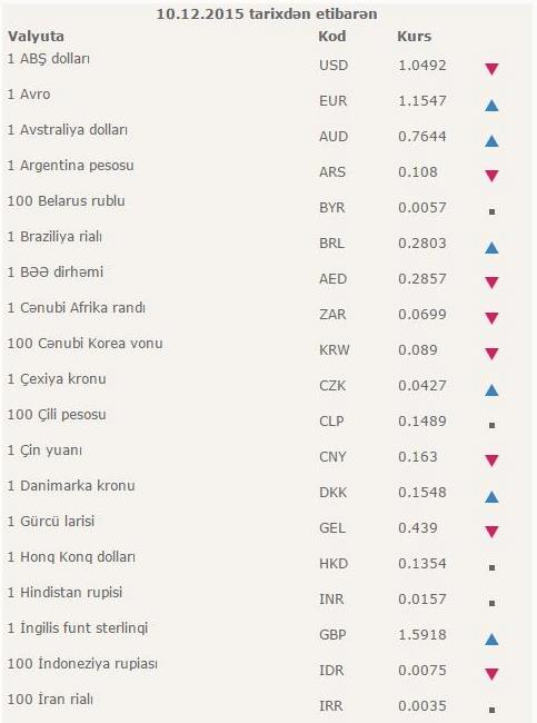 Bugünkü məzənnəyə əsasən, 1 dollar 1.0492 manat təşkil edir.