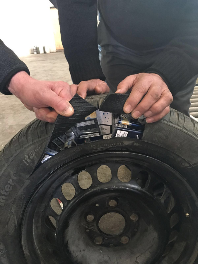 Azərbaycan vətəndaşı, 37 yaşlı İsgəndərov Rəfail Həsən oğlunun idarə etdiyi “Mersedes” markalı 90 EM 488 dövlət nömrə nişanlı minik avtomobilinin ehtiyat təkərinin içərisində eyni üsulla düzəldilən saxlanc yerindən isə üzərində aksiz markası olmayan 3800 ədəd siqaret aşkar olunub.
