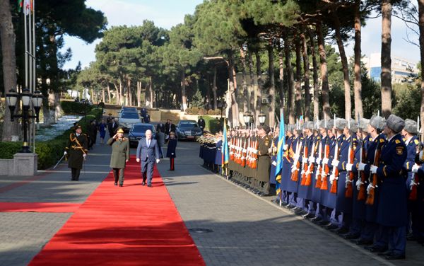 Sonra Müdafiə Nazirliyində rəsmi qarşılanma mərasimi keçirilib.