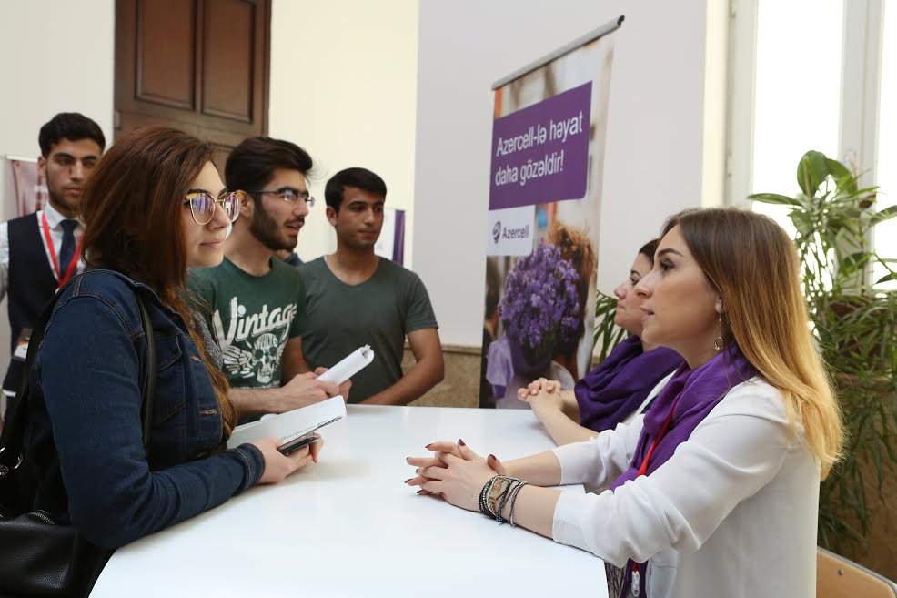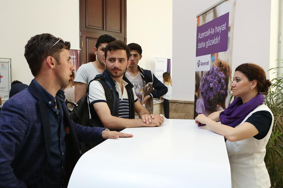 vakansiyalar barədə sərgi iştirakçılarını məlumatlandırıblar. İşə qəbul şöbəsinin əməkdaşları Azercell-ə işə qəbul və şirkətin elan etdiyi Tələbə Təqaüdü və Təcrübə proqramları haqqında məlumat veriblər, eyni zamanda məzunları maraqlandıran sualları cavablandırıblar. Tələbələr mövcud əmək bazarında onların ixtisaslarına olan tələbat barədə məlumat əldə etmək, işəgötürənlərlə ilkin əlaqələr qurmaq, işəgötürənlər isə öz növbəsində potensial kadrların seçimini aparmaq imkanı qazanıblar.