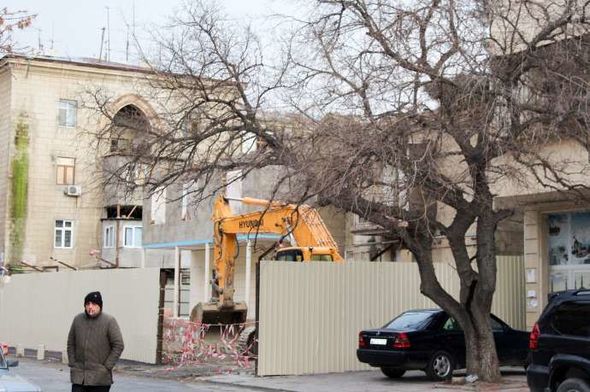 Ərazi dəmir çəpərlərlə əhatəyə alınıb. Binlar sökülür və qarşısında olan ağaclar kəsilir.