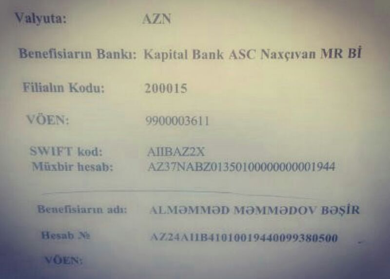 "Yazaraq sizə bildirirəm ki, mən Naxçıvan Dövlət Universitetinin, Tibb fakultəsinin V kurs tələbəsiyəm. Yeddi aydır ki, kəskin Mieloblast Leykozdan əziyyət çəkirəm. Diaqnoz B.Eyvazov adına Hemotologiya və Trasfuziologiya İnstitunda qoyulmuş, müalicə üçün Belarusiya Respublikasına göndərilmişik. Yaxınlarımız və xeyirxah insanların köməyi ilə Minsk şəhər Voroyonka Uşaq Onkologiya Mərkəzində bir kurs mülicə almişam. Orada xəstəliyin müalicəsinin kimyəvi terapiya ilə keçməyəcəyini və ilik transplantasiyasını vacib biliblər. Çox bahalı əməliyyat olduğundan Bakıya qayıtmalı olmuşuq. İki blok kimyəvi terapiyanı ATU Tədris Terapevtik Klinikada almış, imkanımız tükəndiyi üçün Naxçıvana qayıtmalı olmuşuq.