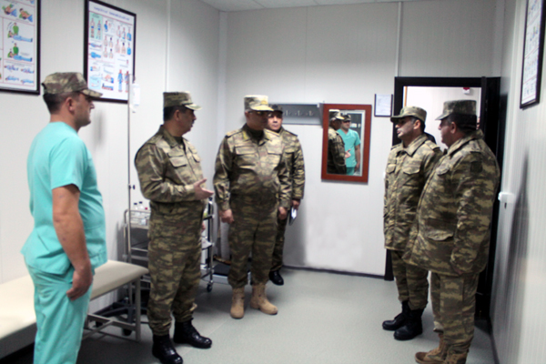 Müdafiə Nazirliyinin rəhbərliyi ərazidəki qərargah, əsgər yataqxanası, yeməkxana, qazanxana, ərzaq anbarı, tibb məntəqəsi, sıra meydanı, eləcə də digər xidməti və inzibati otaqlara baxış keçirib.