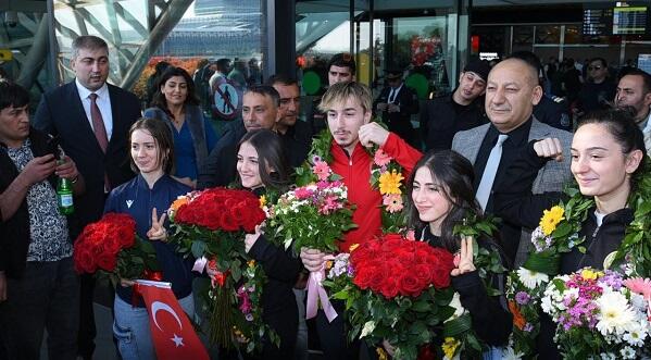 Hava limanında idmançılar xüsusi coşquyla qarşılanıblar.