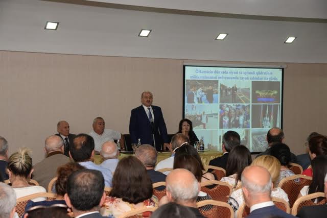Qloballaşan dünyanın tələblərinə cavab verən ölkəmizdə Azərbaycan Respublikasının Prezidenti cənab İlham Əliyevin rəhbərliyi ilə aparılan işlərin nəticəsidir ki, bu gün təhsil infrastrukturu mühitində uğurlu addımlar atılmış, ekologiya, turizm, əhalinin asudə vaxtının səmərəli təşkili, cəmiyyətin həyatında qadınların fəallığının artırılması, əhalinin məşğulluğunun artırılması, səhiyyənin, bədən tərbiyəsinin, idmanın inkişafı, gənclər və uşaq siyasəti, din və s. məsələlərdə yeni-yeni nailiyyətlər əldə edilmişdir. Azərbaycan Respublikasının Birinci vitse-prezidenti Mehriban xanım Əliyevanın təşkilatçılığı sayəsində respublikamızda bir sıra beynəlxalq tədbirlər keçirilmiş, uğurlu layihələrə imza atılmışdır.Natiq qeyd etdi ki, ölkəmizdə vətəndaş cəmiyyəti quruculuğunun genişləndiyi və demokratiyanın bərqərar olduğu dövrdə cəmiyyətimizdə gedən proseslərin düzgün qiymətləndirilməsi, ölkə Prezidenti cənab İlham Əliyevin həyata keçirdiyi siyasətin hər bir Azərbaycan vətəndaşı tərəfindən dərindən dərk edilməsi həyati zərurətə çevrilmişdir. Bununla əlaqədar ideoloji iş, xüsusilə bu işin həlledici sahəsi olan təbliğat işinin gücləndirilməsi və səmərəliliyinin artırılması son dərəcə böyük əhəmiyyət kəsb edir.