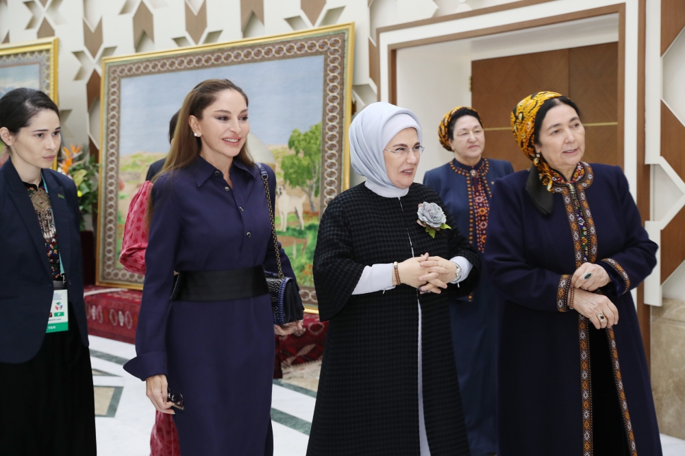 Bu gün Türkmənbaşı şəhərində Azərbaycan , Türkiyə və Türkmənistan Dövlət Başçılarının Birinci Üçtərəfli Zirvə Görüşü çərçivəsində Azərbaycanın birinci xanımı Mehriban Əliyeva, Türkmənistan Parlamenti Xalq Məsləhətinin sədrinin xanımı Oqulgerek Berdiməhəmmədova, Türkiyənin birinci xanımı Əminə Ərdoğan təsviri və dekorativ sənət əsərlərindən ibarət sərgilərlə tanış olublar.