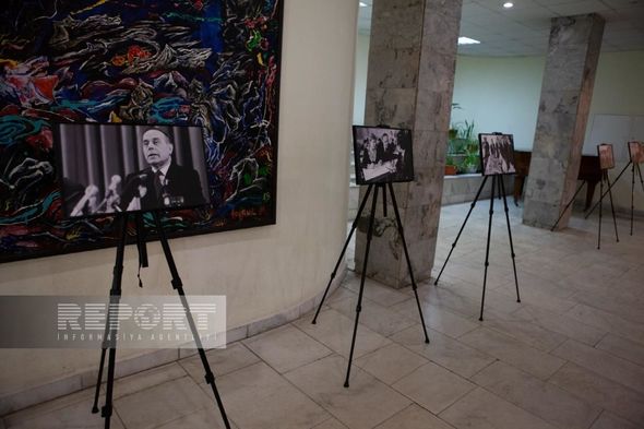 Foyedə Ulu Öndərin həyatından bəhs edən fotosərgi təşkil olunub, kitablar nümayiş etdirilib.