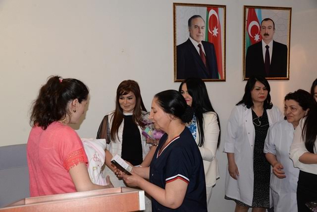 Nəsimi rayon Qeydiyyat şöbəsi əməkdaşları burada dünyaya gələn 70-dən artıq uşaqlara şəhadətnamə veriblər.Yeni doğulan uşaqların adları bir-bir çəkildikdən sonra valideyinlərə doğum şəhadətnaməsi ilə yanaşı, hədiyyələr də təqdim edilib.