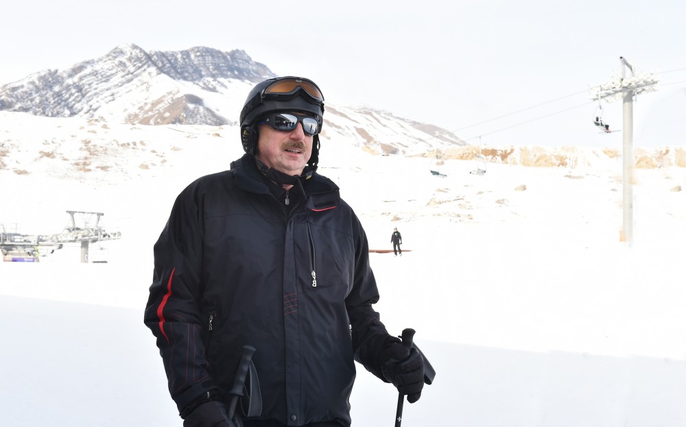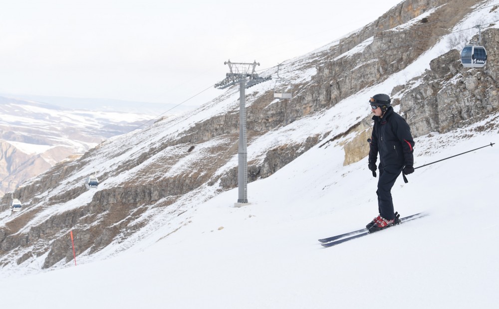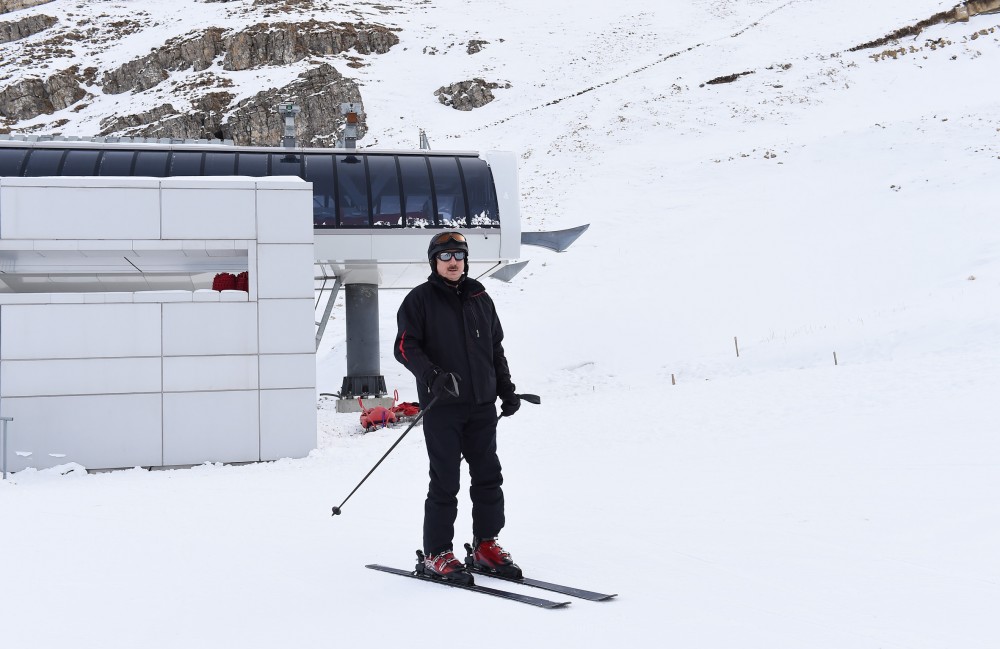 Sonra Prezident İlham Əliyev "Şahdağ” qış-yay turizm kompleksində xizək sürüb.