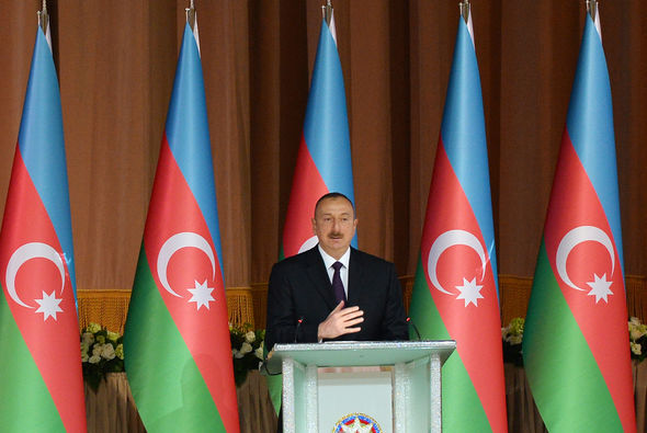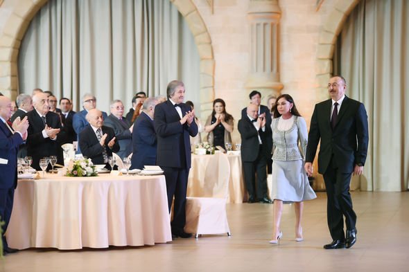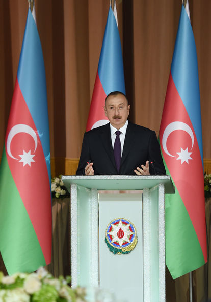 Tədbirin əvvəlində Azərbaycanın dövlət himni səsləndirilib. Daha sonra dövlətimizin başçısı rəsmi qəbulda nitq söyləyib.