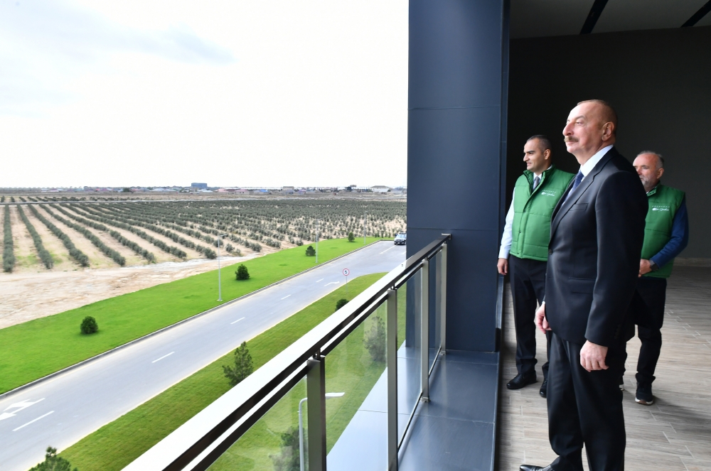 Prezident İlham Əliyev: Boş torpaqlarda belə gözəl kompleks yaratmışıq. Burada tarix boyu heç nə bitmirdi, heç nə əkilmirdi. Amma biz hər yerdə xariqələr yaradırıq.