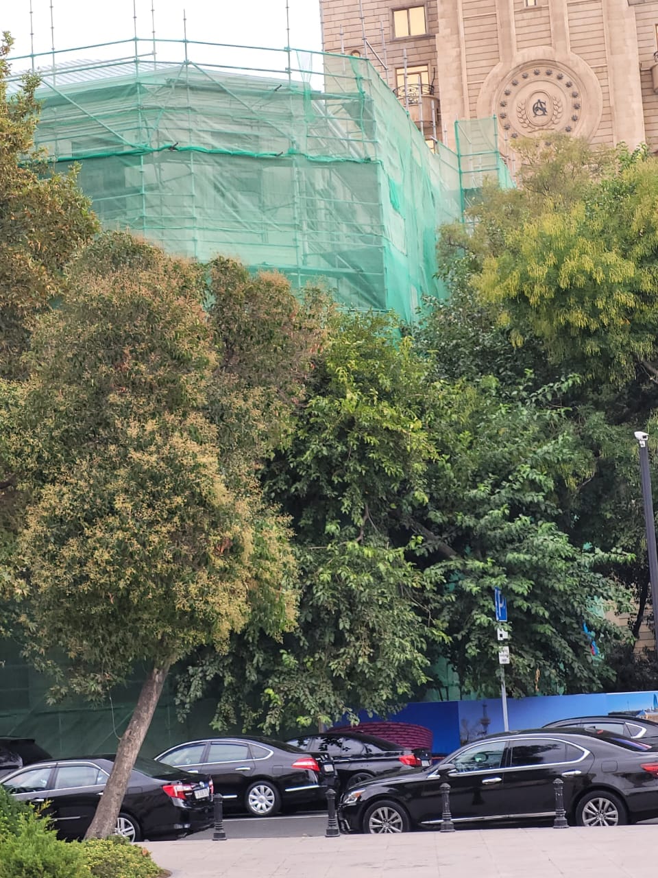 Xidmət rəsmisi qeyd edib ki, Səbail rayonu, Neftçilər prospekti 51 ünvanında yerləşən abidəyə 13.09.2022-ci il tarixində Mədəniyyət Nazirliyi yanında Mədəni İrsin Qorunması, İnkişafı və Bərpası üzrə Dövlət Xidmətinin Bakı Regional İdarəsinin əməkdaşları tərəfindən keçirilən baxış zamanı həmin binanın fasadında ayağaltılar qurulmaqla və dam hissəsinə qeyri-qanuni müdaxilələr edilməklə təmir-bərpa işlərinə hazırlıq görüldüyü aşkar olunub: