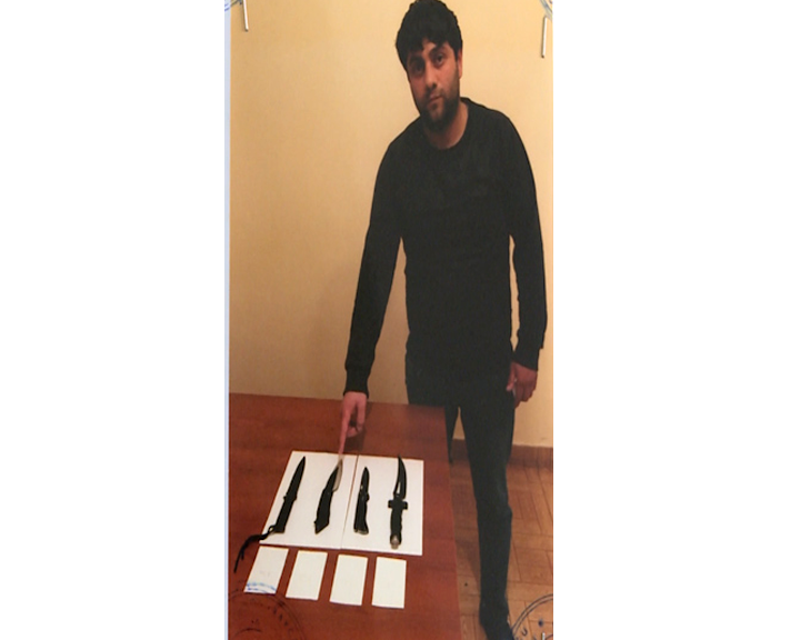 Sahib Həsənovun istifadəsində olan avtomaşına baxış keçirilərkən 1 ədəd qara rəngli, qatlanmayan bıçaq aşkar olunub. DİN-dən alınmış tələbnaməyə əsasən, Cahangirov narkotik vasitələrdən istifadə etdiyinə görə 2009-cu ildə Nərimanov rayon məhkəməsinin hökmü ilə 4 ay müddətinə azadlıqdan məhrum edilib.