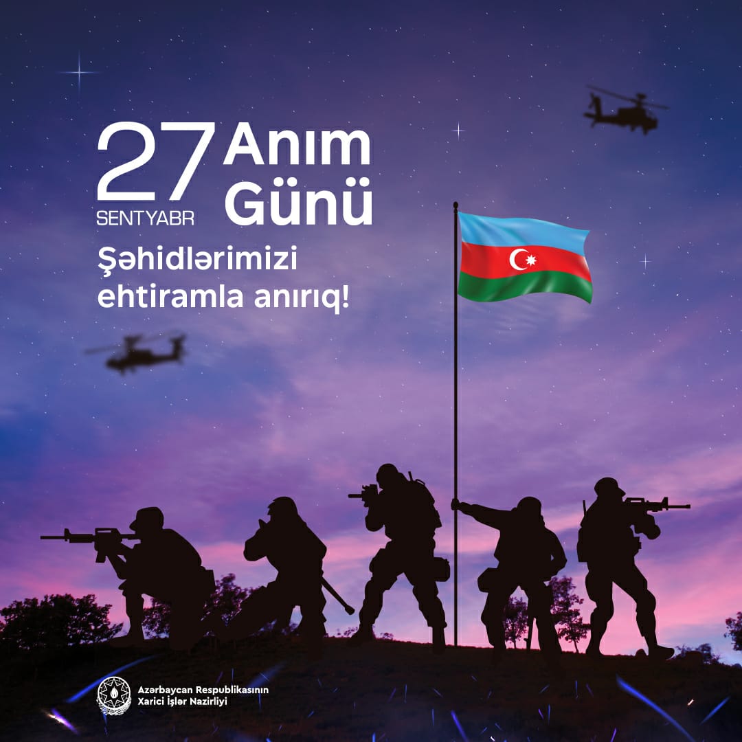 Azərbaycan Respublikasının Xarici İşlər Nazirliyi "Twitter" hesabında 27 sentyabr Anım Günü ilə bağlı paylaşım edib.