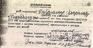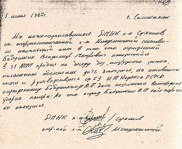 30 yanvar 1985-ci ildə cəzasını çəkdiyi Solikamska ИТК-6 yəni "Ağ qu quşu” həbsxanasında DİN-in mərkəzi aparatının əməkdaşı ilə görüşür. Həmin görüşdən bir hissə: